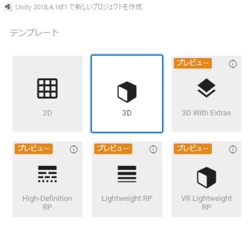 もう記憶が定かじゃないのですが,Unity 5,Unity 2017までは, プロジェクトを作成する際,テンプレートは2Dと3Dしかなかったと思います. Unity 2018.1からプレビューとして,High-Definition RPとかLight Weight RPとか VR Lightweight RPとか追加されて…
